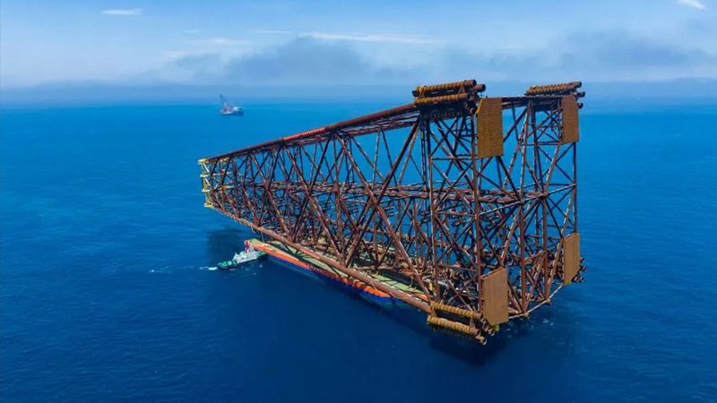 近日 由我國(guó)自主設(shè)計(jì)建造的 亞洲第一深水導(dǎo)管架“?;?hào)” 在珠江口盆地海域成功滑移下水 巨力索具保障該項(xiàng)目吊裝順利“扶正” 創(chuàng)造了固定式海洋平臺(tái) 重量、高度、作業(yè)深度等多項(xiàng)亞洲紀(jì)錄