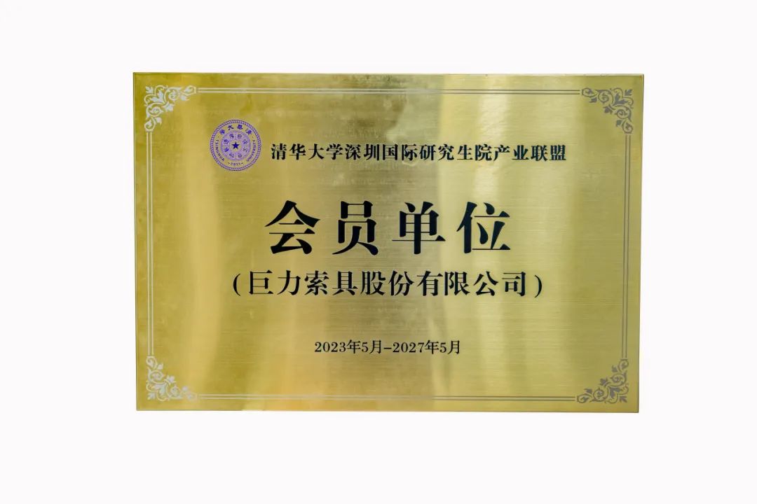 2023年7月31日,巨力索具正式納入清華大學深圳國際研究生院產業聯盟會員單位,雙方在巨力索具總部科技中心舉行了授牌儀式。