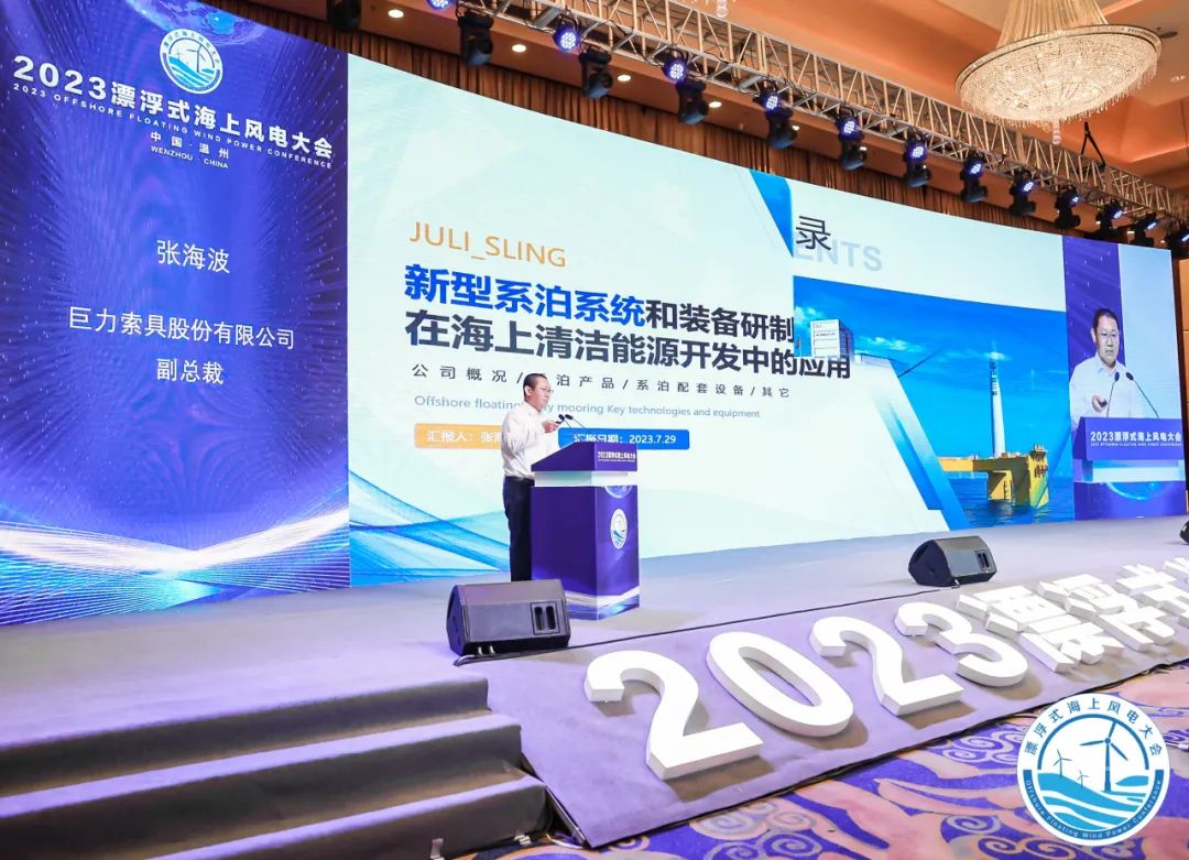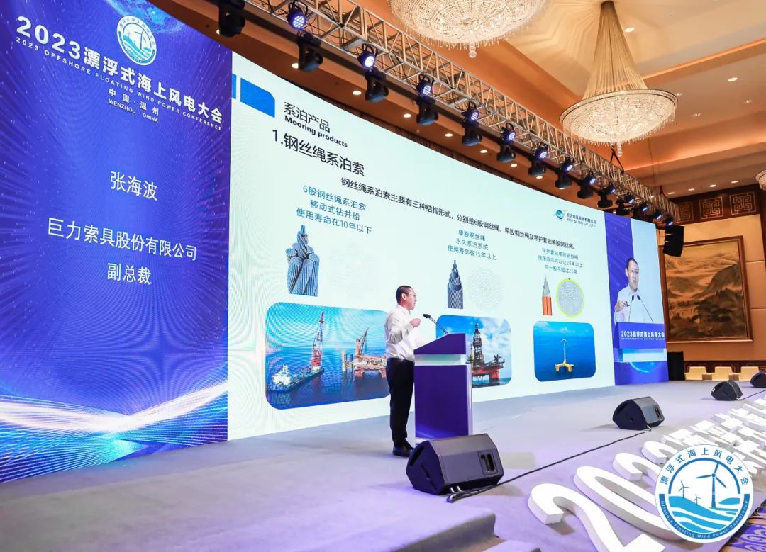 2023年7月28日-29日,溫州市人民政府聯(lián)合中國海洋工程咨詢協(xié)會海上風(fēng)電分會、國家風(fēng)力發(fā)電工程技術(shù)研究中心等風(fēng)電重點(diǎn)企事業(yè)單位舉辦的“2023年漂浮式海上風(fēng)電大會”順利召開。巨力索具副總裁張海波出席會議并做報(bào)告。