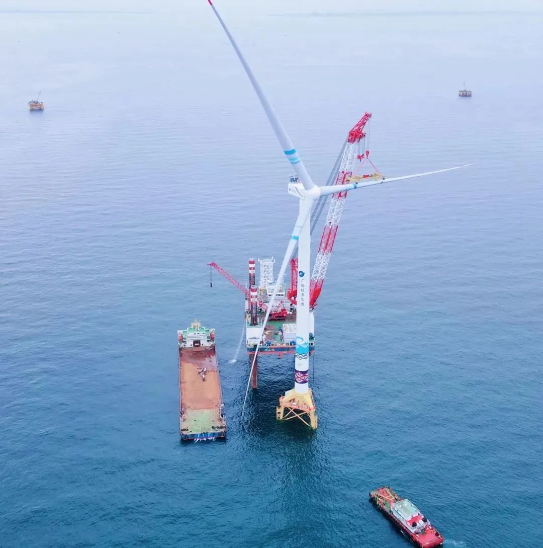 據悉,本次吊裝的風電機組單支葉片長111.5米、重42噸,葉輪掃風面積40627平方米。