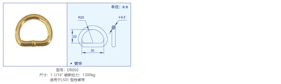 | EH001 | 320 | 5000 | 55 | 22 | 18 | 17 | 8 | 19 | 55 | 15 | 鍍鋅 | 轎車牽引帶 |